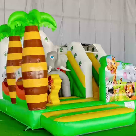 El Juego Inflable Happy Jungle es diferente, precioso y con terminaciones de lujo, ideal para marcar la diferencia y no arrendar siempre lo mismo.